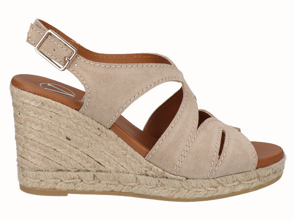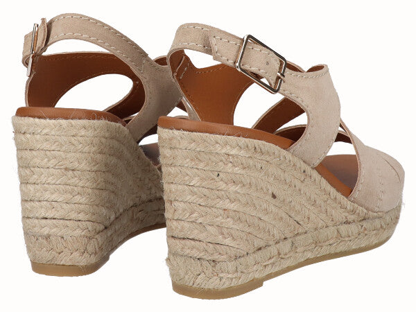 Sandalia Cuña Alta Yute Serraje Beig