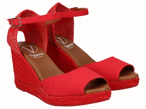 Sandalias con cuña alta de yute de 9 cm, de los cuales 6,5 cm son de cuña y 2,5 cm de plataforma. Fabricadas en lino de alta calidad y con plantilla de piel acolchada. Comodidad, durabilidad y versatilidad de un calzado 100% español. Cuenta con la garantía de calidad de Alpargatas Viguera.