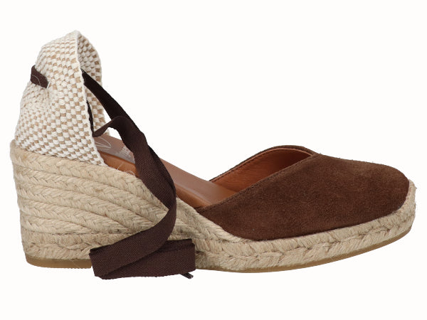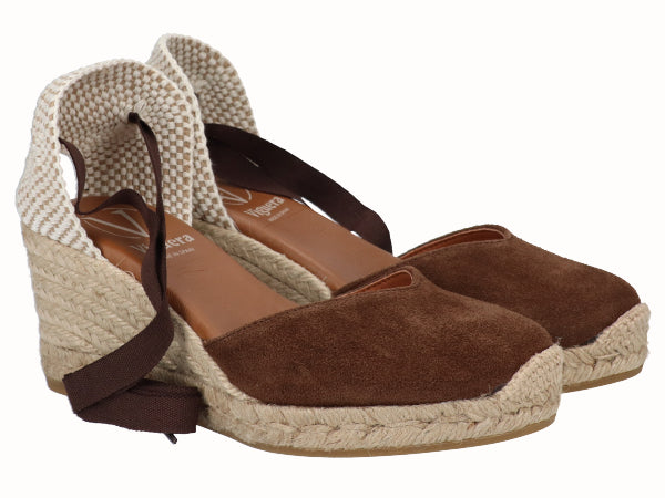 Alpargata valenciana con cintas y con cuña de yute de 6,5 cm aproximadamente, fabricada en piel serraje de la mejor calidad y con plantilla de piel acolchada. Comodidad, durabilidad y versatilidad de un calzado 100% español. Cuenta con la garantía de calidad de Alpargatas Viguera.