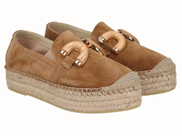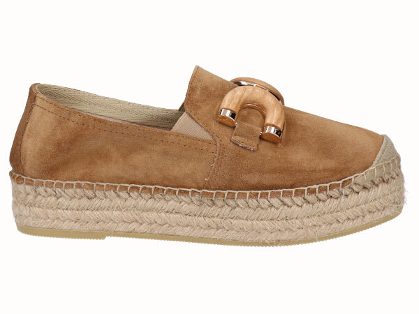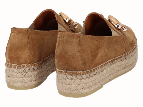 Alpargata camping plana con piso grueso YuteFlex de unos 3,5 cm, fabricada en piel serraje de la mejor calidad y con plantilla de gel acolchada. Incorpora elásticos laterales para facilitar su puesta y adorno en el copete que le aporta un toque sofisticado. Perfectas para combinar con tus casual look. Comodidad, durabilidad y versatilidad de un calzado 100% español. Cuenta con la garantía de calidad de Alpargatas Viguera.