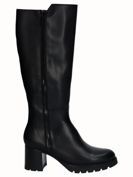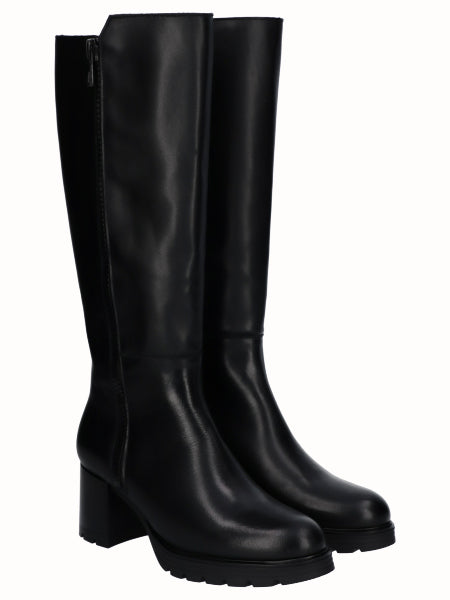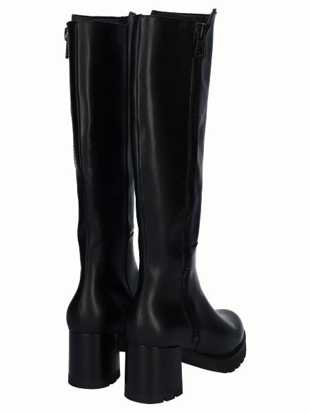 Bota Alta Tacon Piel Negro