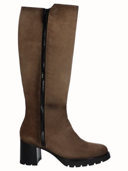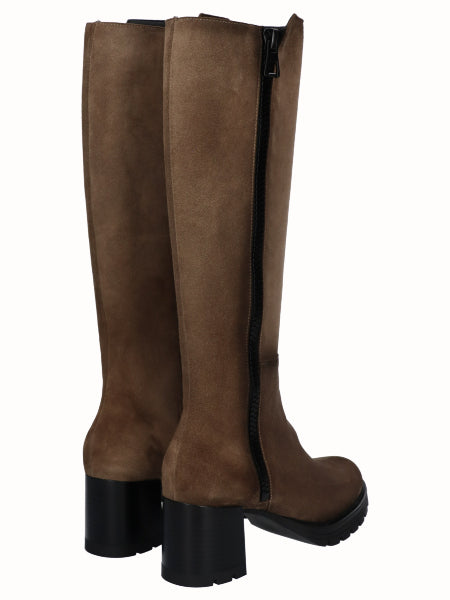 Bota alta con tacón de 7 cm fabricada en piel serraje de la mejor calidad y con plantilla de gel acolchada que aporta comodidad y flexibilidad en cada pisada. Cierre mediante cremallera a la vista. Comodidad, durabilidad y versatilidad de un calzado 100% español. Cuenta con la garantía de calidad de Alpargatas Viguera.