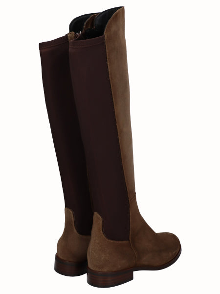 Bota alta con piso plano de 3 cm y puntera redondeada, fabricada en piel serraje de la mejor calidad. Con cierre mediante cremallera lateral y elástico en la parte trasera que proporciona un perfecto ajuste a la pierna. Esta bota cuenta con un sistema de plantilla acolchada que nos aporta flexibilidad y confort en la pisada. Comodidad, durabilidad y versatilidad de un calzado 100% español. Cuenta con la garantía de calidad de Alpargatas Viguera.