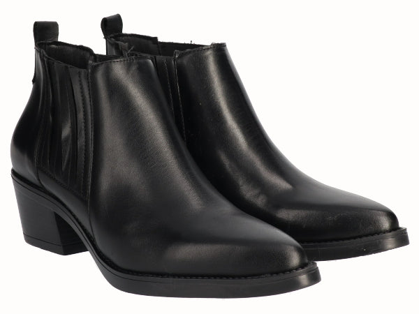 Botín gaucho estilo cowboy con tacón de 3,5 cm de altura aproximadamente y punta fina, fabricado en piel de la mejor calidad. Este botín cuenta con una plantilla de gel acolchada que nos aporta flexibilidad y confort en la pisada. Ajuste óptimo mediante elásticos laterales. Comodidad, durabilidad y versatilidad de un calzado 100% español. Cuenta con la garantía de calidad de Alpargatas Viguera.