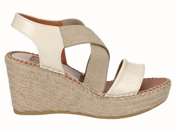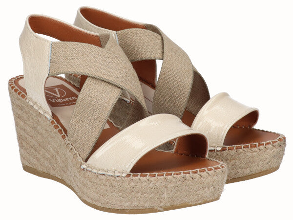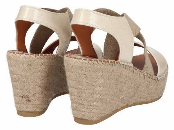Alpargata sandalia con cuña de yute de 7,5 cm y plantilla de piel acolchada, fabricadas en piel charol de la mejor calidad. Ajuste óptimo mediante elásticos. Comodidad, durabilidad y versatilidad de un calzado 100% español. Cuenta con la garantía de calidad de Alpargatas Viguera.
